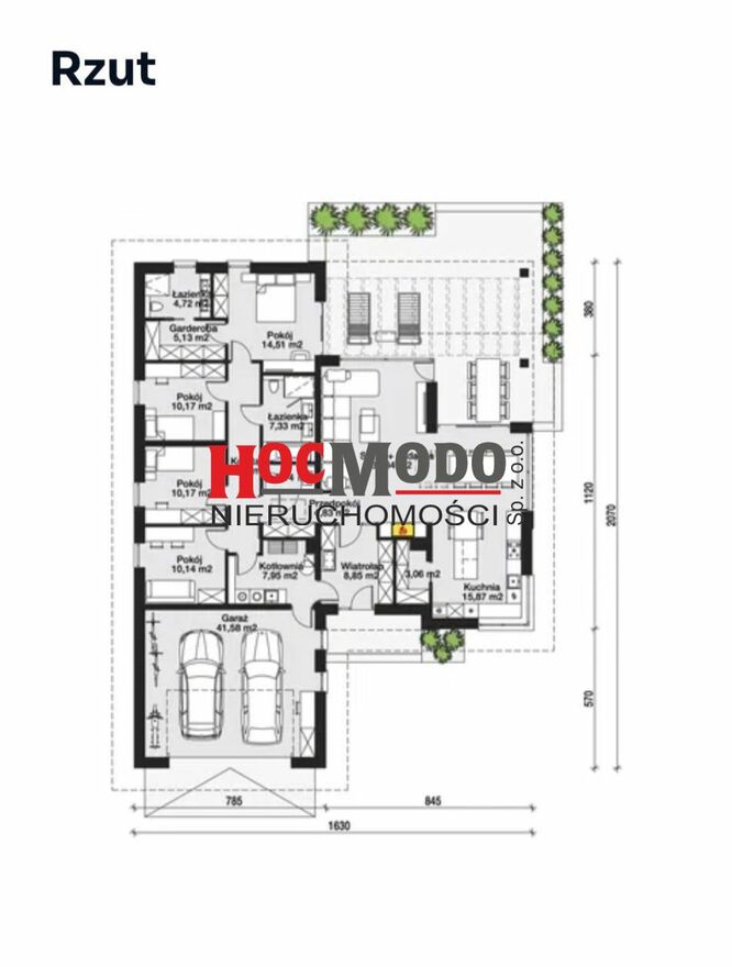 Układ pomieszczeń - przemyślany projekt zapewnia maksymalny komfort użytkowania i podział na strefy: