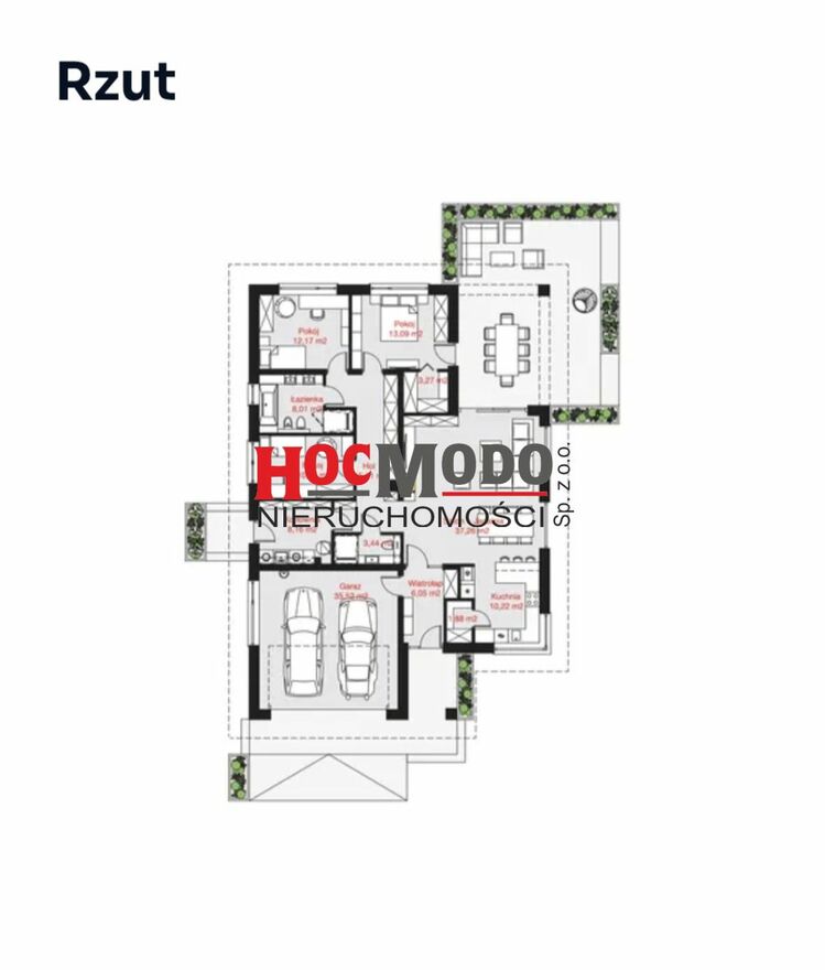Garaż 2-stanowiskowy (35,52 m2) w bryle budynku